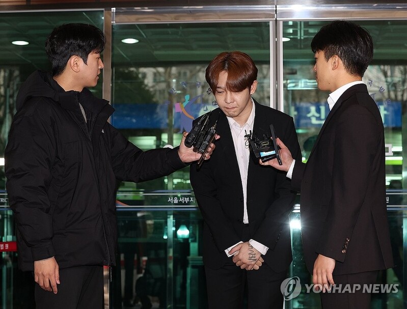 | ▲ Singer Nam Tae-hyun (C) leaves a court in western Seoul after receiving a suspended prison term over buying and taking drugs, on Jan. 18, 2024. (Yonhap) |