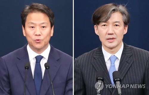 | ▲ These images show former presidential chief of staff Im Jong-seok (L) and former senior presidential secretary for civil affairs Cho Kuk. (Yonhap) |