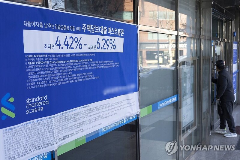 The country's household debts gained 10.1 trillion won (US$7.5 billion) from a year earlier in 2023, a turnaround from an 8.8 trillion-won decrease in the previous year.