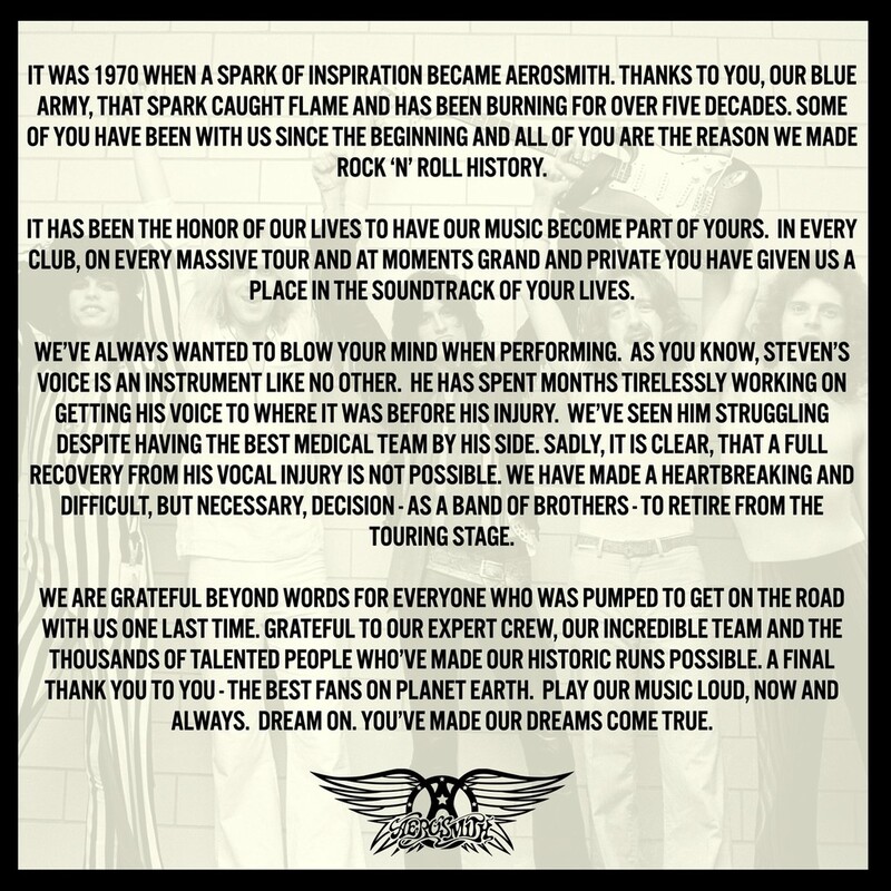 | ▲ 에어로스미스 은퇴 공지 [에어로스미스 엑스 캡처. 재판매 및 DB 금지] |