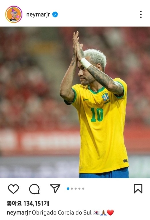 | ▲ 네이마르가 올린 한국에 대한 감사 인사. [네이마르 소셜 미디어 화면. 재판매 및 DB 금지] |