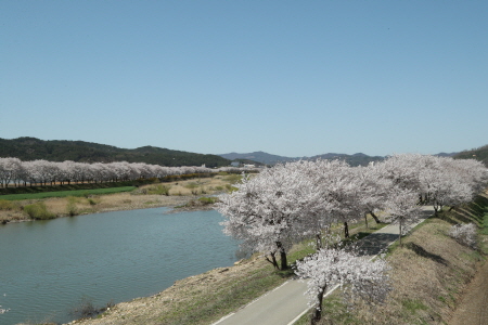 보청천변 벚꽃길은 보은읍 학림리에서 탄부면 대양리까지 자전거도로 20㎞에 걸쳐 이어져 있는 보은을 대표하는 또 하나의 명소이다.