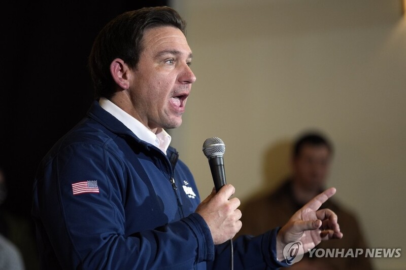 | ▲ This Associated Press photo shows Florida Gov. Ron DeSantis speaking at a campaign event in Ankeny, Iowa, on Jan. 14, 2024. (Yonhap) |