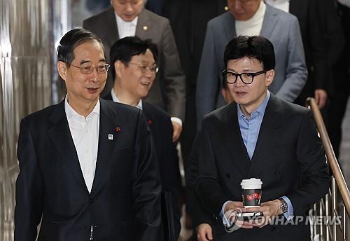 Han made the remarks at a meeting with senior officials at the ruling People Power Party, including Han Dong-hoon, chairman of the party's emergency committee.