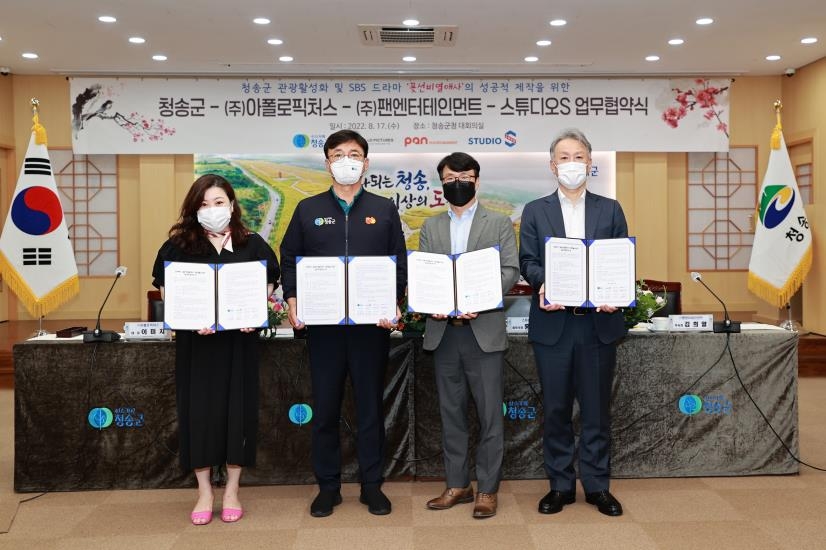 협약식에는 윤경희 청송군수와 아폴로픽쳐스, 스튜디오S, 팬엔터테인먼트 등 제작사 대표들이 참석했다.