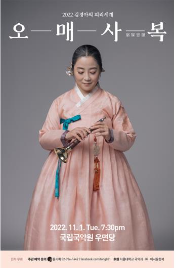 ▲ 피리 연주자 김경아 독주회 '오매사복' = 피리 연주자 김경아가 다음 달 1일 서울 서초구 국립국악원 우면당에서 독주회 '오매사복'을 연다.