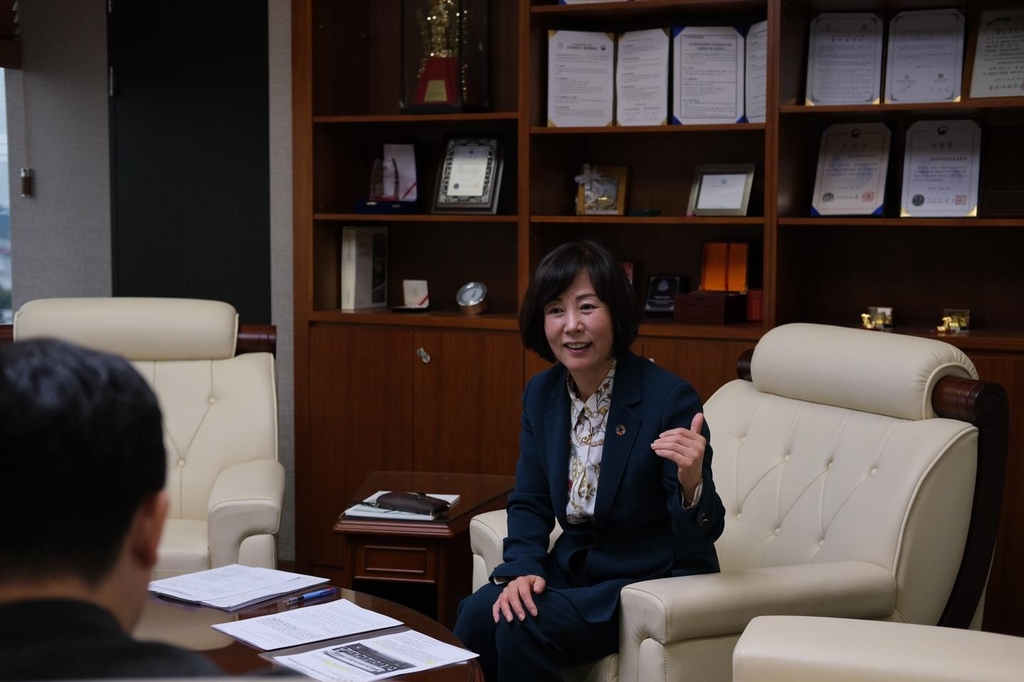 | ▲ Kim Phil-yeo, chair of the Korea Association Against Drug Abuse (KAADA), speaks during an interview in Seoul on Oct. 27, 2022. (Yonhap) |