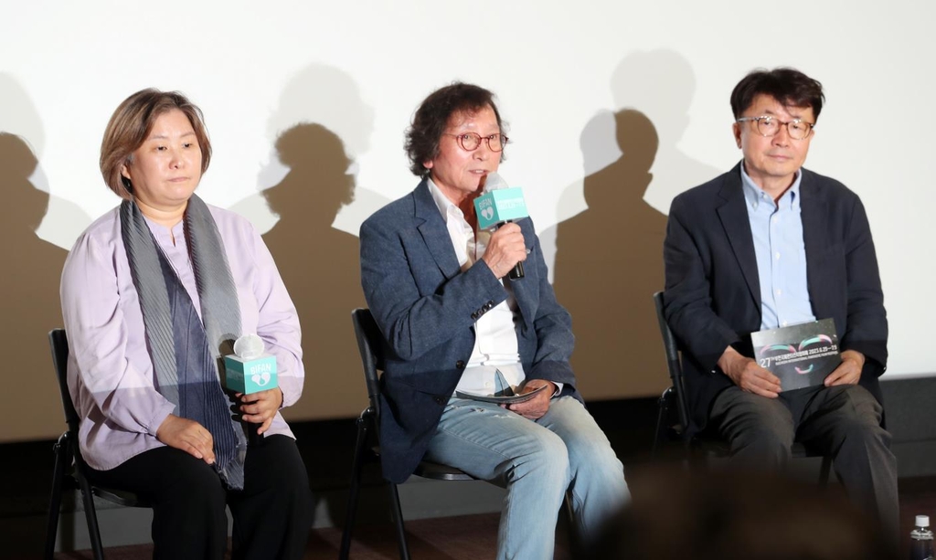 | ▲ 제27회 부천국제판타스틱영화제 공식 기자회견 (부천=연합뉴스) 손현규 기자 = 7일 오전 경기도 부천시청에서 열린 제27회 부천국제판타스틱영화제(BIFAN) 공식 기자회견에서 정지영 영화제 조직위원장(가운데)이 취재진의 질문에 답변하고 있다. 2023.6.7 |