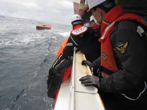 SEOGWIPO, South Korea, Jan. 25 (Yonhap) -- A Hong Kong-registered cargo ship carrying 22 crew members sank off the southern island of Jeju on Wednesday, and 12 of them were rescued, while a search is under way for the others, the Coast Guard said.