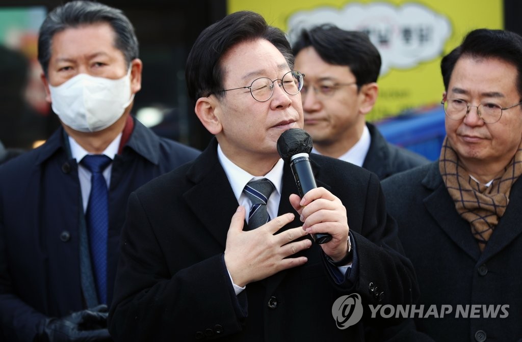 | ▲ Rep. Lee Jae-myung, the chairman of the main opposition Democratic Party, speaks during a visit to the southern city of Gwangju on Dec. 28, 2022. (Yonhap) |