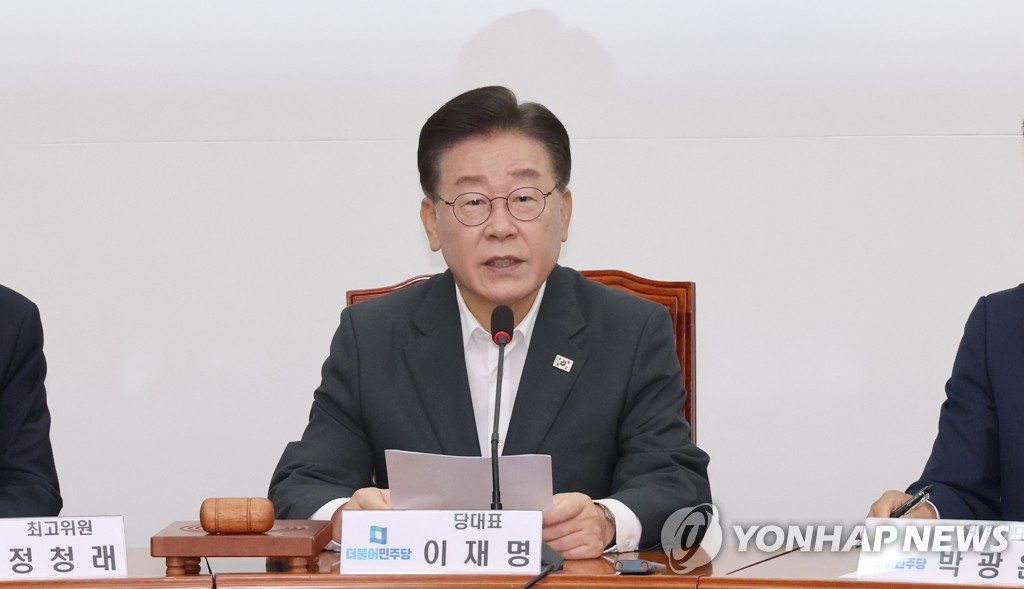 | ▲ Main opposition Democratic Party leader Lee Jae-myung speaks at the party's leadership meeting at the National Assembly in Seoul on July 26, 2023. (Yonhap) |