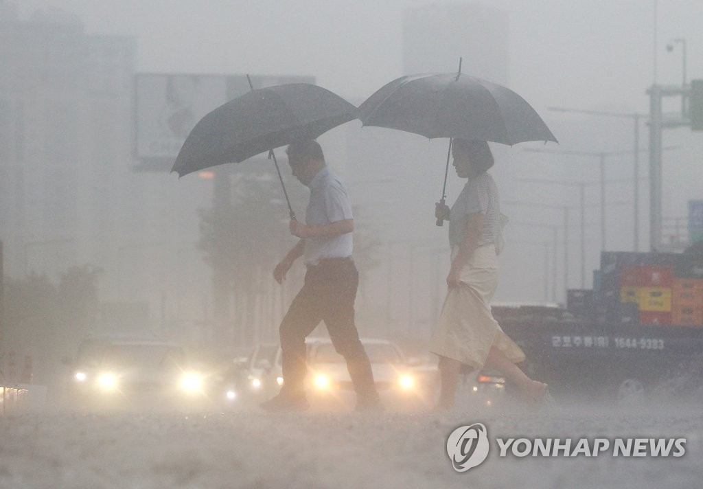 The KMA said the torrential rains may intensively pummel most regions Tuesday, forecasting hourly precipitation of 30 to 60 mm and up to 80 mm of rain per hour on the southern coastline and near Mount Jiri.