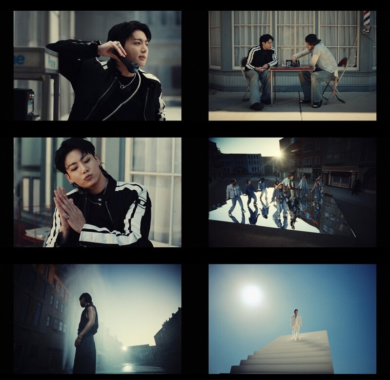 이날 음원과 함께 공개된 뮤직비디오는 미국 로스앤젤레스에서 촬영됐다. 정국은 여러 가지 세트에서 차원을 오가는 듯한 연출로 '차원을 초월해 사랑하는 너를 보고 싶다'는 메시지를 은유적으로 표현했다