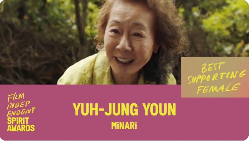 윤여정은 22일(현지시간) 열린 제36회 '필름 인디펜던트 스피릿 어워즈' 온라인 시상식에서 여우조연상 트로피를 품에 안았다.