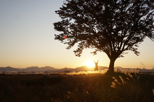 밀양시 하남명품십리길, 노을이 머무는 '나 홀로 나무'