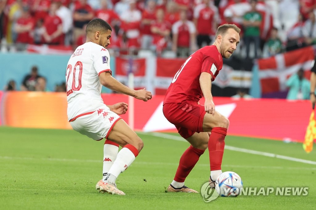 이번이 세 번째 월드컵 무대인 에릭센은 22일(한국시간) 카타르 알라이얀의 에듀케이션 시티 스타디움에서 열린 조별리그 D조 1차전 튀니지와 경기에 등번호 10번을 달고 선발 출전했다.