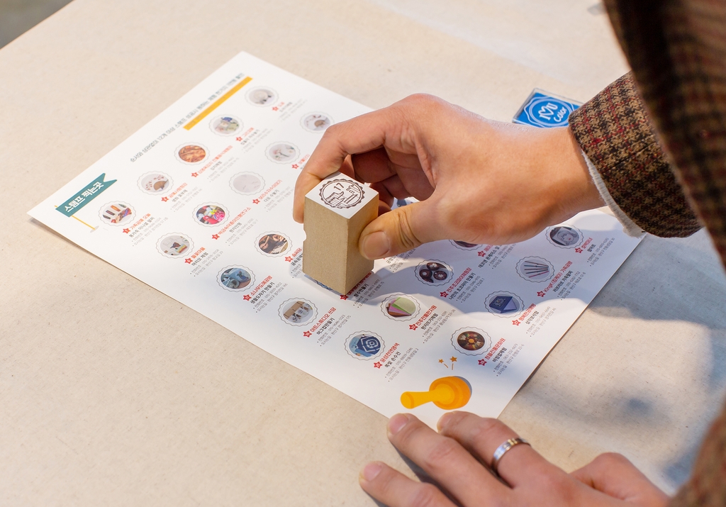 한옥마을 안에 있는 20여개 공방 가운데 12곳 이상을 찾아 스탬프를 찍어오면 수공예 체험 할인권을 주는 방식이다.