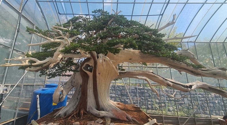 (신안=연합뉴스) 조근영 기자 = 천년이 넘는 세월이 고스란히 녹아 있는 듯 조형미가 예술적 경지를 넘어선 희귀한 주목 분재가 일반인에 공개된다.