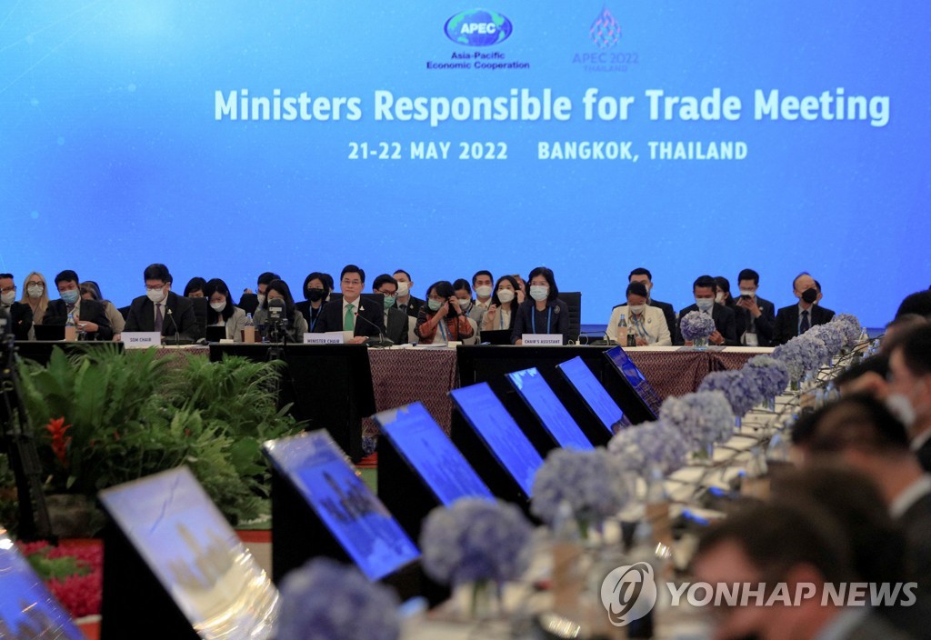 ▲ This Reuters photo shows the Ministers Responsible for Trade Meeting of the Asia-Pacific Economic Cooperation (APEC) in Bangkok, Thailand, on May 21, 2022. (Yonhap) |