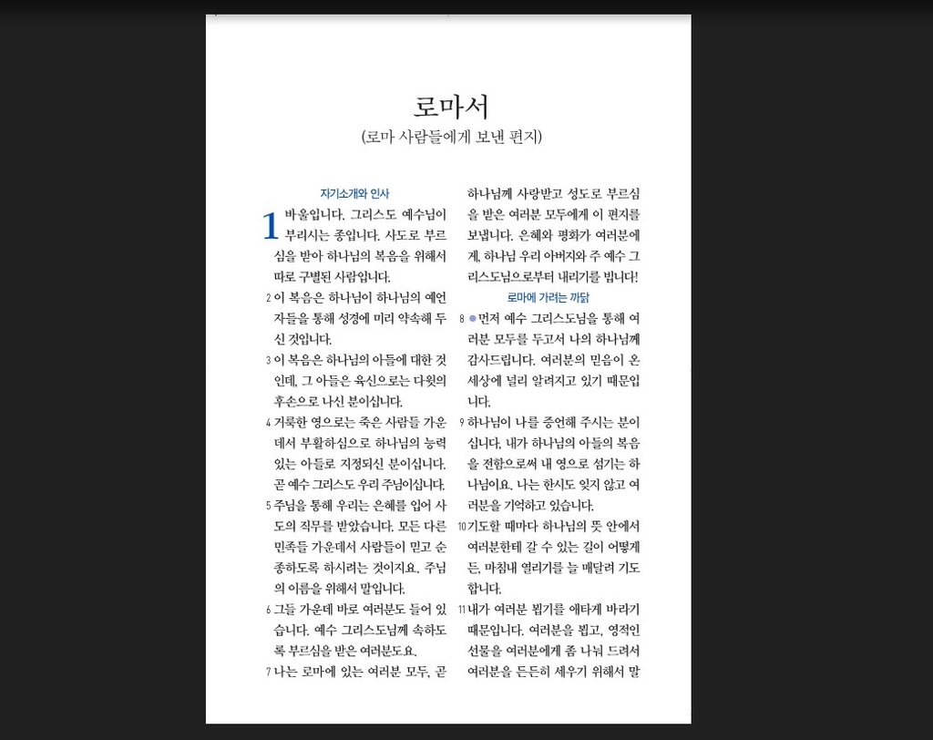▲ 새한글성경 신약과 시편 중 '로마서' [대한성서공회 제공]