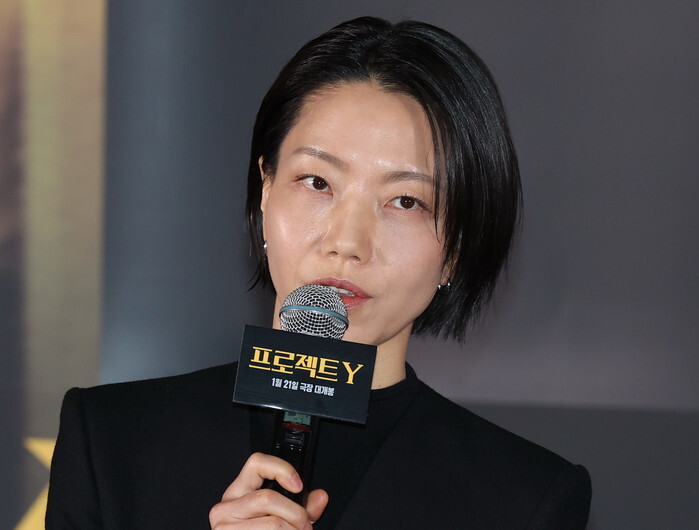 South Korean actress Kim Shin-rok, who stars in the new movie "Project Y," speaks during a publicity event in Seoul on Jan. 8, 2026, to promote the movie, set to hit local screens in South Korea on Jan. 21. (Yonhap)