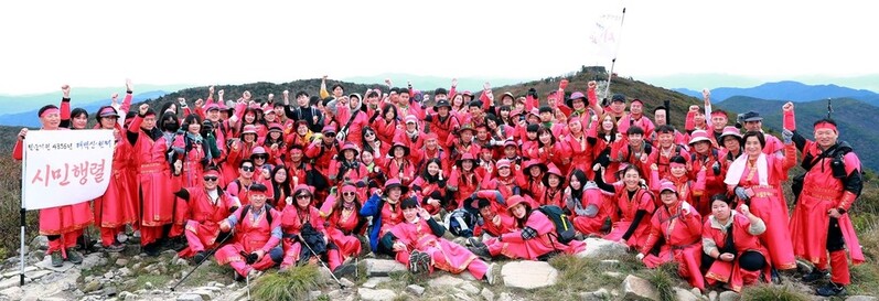 천제단에서 봉행한 태백산 천제에서는 시민 200명이 의복을 갖추고 태백산을 오르는 진풍경을 연출했다.