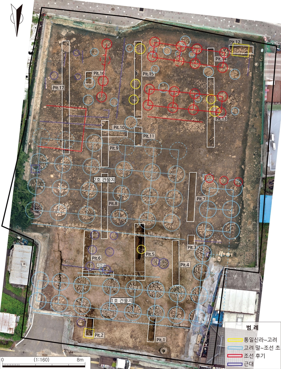 이번 발굴조사에서는 또 통일신라∼조선시대에 이르는 대규모 기와 건물지도 다수 확인됐다.