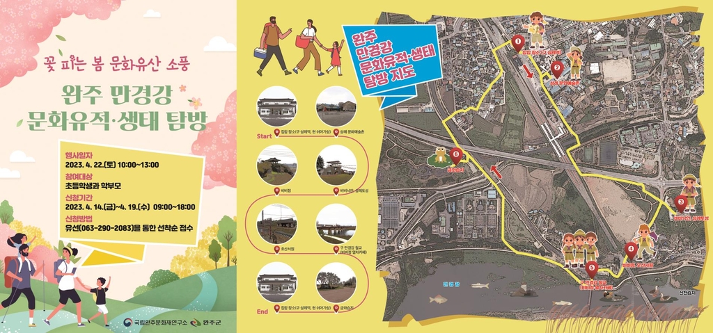 ▲ 국립완주문화재연구소, 22일 만경강 문화유적·생태 탐방 = 국립완주문화재연구소는 이달 22일 전북 완주 만경강 일원에서 문화유적·생태 탐방 행사를 연다.