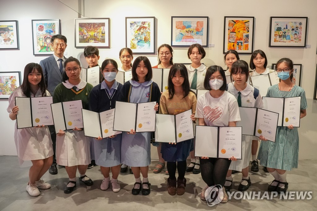 | ▲ 홍콩 학생들이 그린 '내 마음 속의 한국' [주홍콩 한국문화원 제공] 주홍콩 한국문화원이 홍콩 초중고 학생들을 대상으로 진행한 '내 마음 속의 한국' 그림 그리기 대회의 시상식이 지난 29일 열렸다. 사진은 중고등부 수상자들. 2023.4.30. |