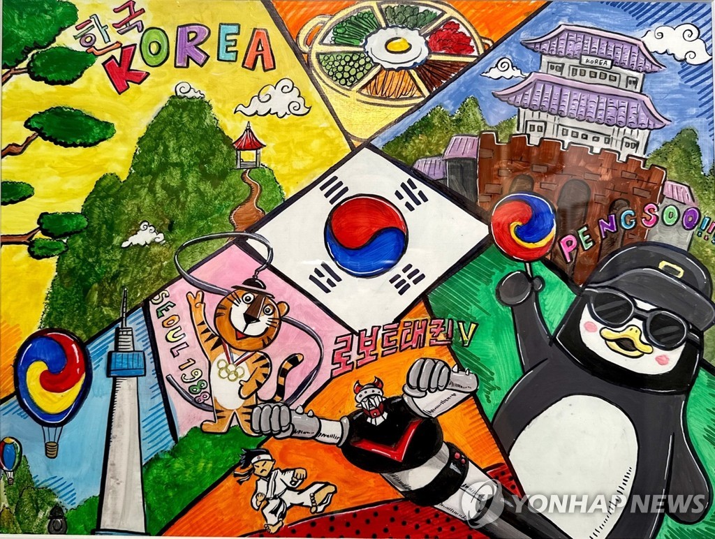 | ▲ 홍콩 학생들이 그린 '내 마음 속의 한국' [주홍콩 한국문화원 제공] 주홍콩 한국문화원이 홍콩 초중고 학생들을 대상으로 진행한 '내 마음 속의 한국' 그림 그리기 대회 수상작들. 2023.4.30. |
