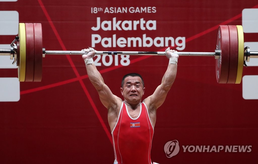 | ▲ This file photo, taken Aug. 20, 2018, shows North Korean weightlifter Om Yun-chol competing in the men's 56kg weightlifting competition at the 18th Asian Games at Jakarta International Expo in Jakarta, Indonesia. (Yonhap) |