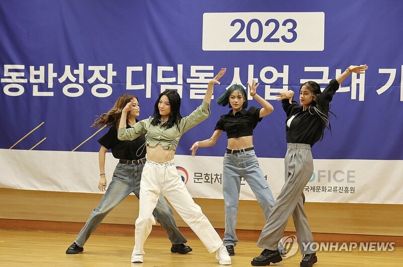 | ▲ 인니 걸그룹 스타비의 '뱅' 무대 (서울=연합뉴스) 이재희 기자 = 30일 오전 서울 중구 충무아트홀에서 열린 '2023 동반성장디딤돌 사업 국내 기자간담회'에서 대상 아티스트로 선정된 인도네시아의 걸그룹 '스타비'(StarBe)가 협업으로 탄생한 곡 '뱅'(Bang)의 무대를 선보이고 있다. 이들은 지난 2일 입국해 약 4개월 간 연수를 마친 뒤 인도네시아로 돌아가 활동을 재개할 예정이다. 2023.8.30 scape@yna.co.kr |