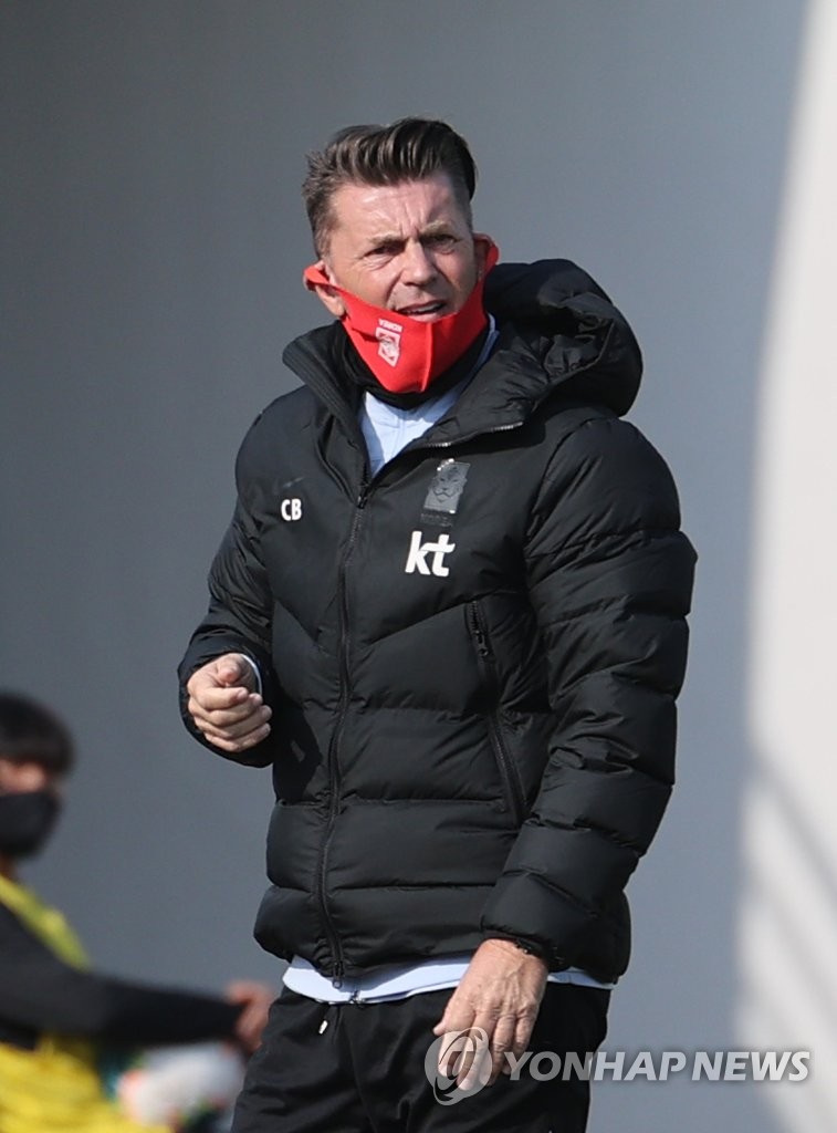 | ▲ In this file photo from Oct. 26, 2020, Colin Bell, head coach of the South Korean women's national football team, watches his players in action against the under-20 women's national team in an exhibition match at Paju Stadium in Paju, Gyeonggi Province. (Yonhap) |