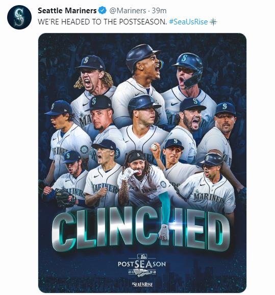 | ▲ 21년 만에 포스트시즌 진출에 성공한 시애틀 매리너스 [시애틀 매리너스 트위터 캡처. 재판매 및 DB금지] |