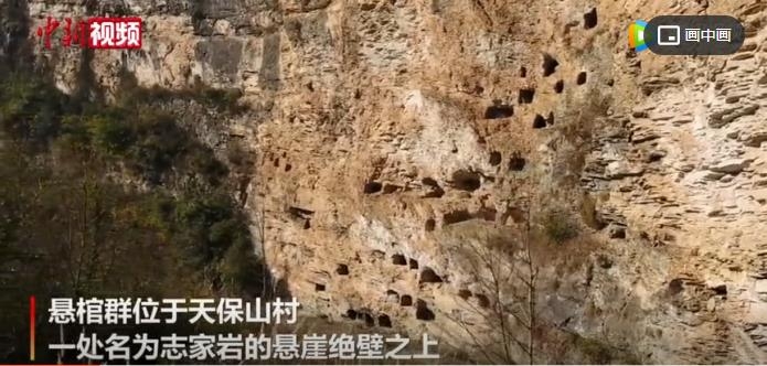 6일 인터넷 매체 중신망에 따르면 허베이성 바둥(巴東)현의 한 협곡 절벽에서 석굴 무덤인 현관(懸棺) 묘 50∼60기가 확인됐다.