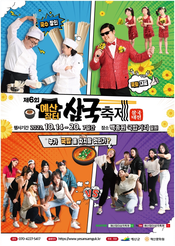 예산군은 오는 14∼20일 예산전통시장 백종원 국밥거리 일원에서 '예산장터 삼국축제'를 개최한다고 7일 밝혔다.
