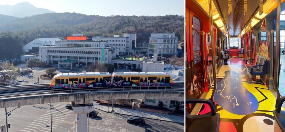 (의정부=연합뉴스) 김도윤 기자 = 경기 의정부시는 시내 자연과 문화를 테마로 꾸민 경전철 2대를 운행 중이라고 5일 밝혔다.