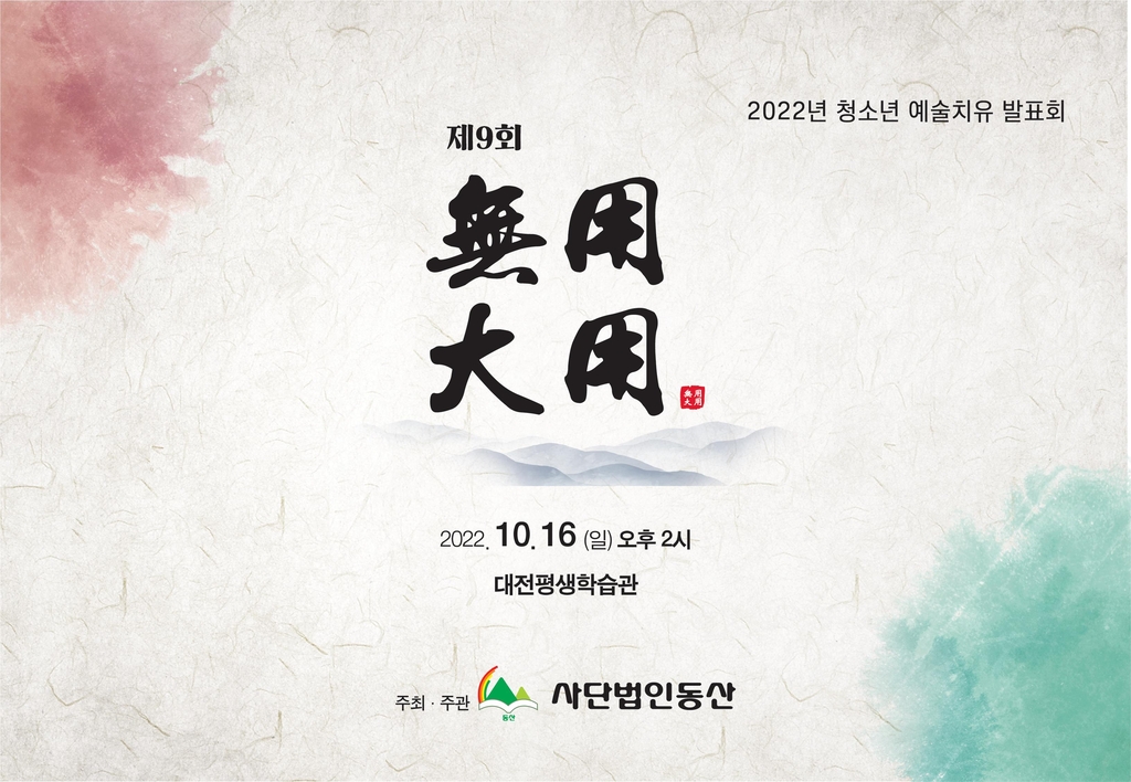 13일 사단법인 동산에 따르면 이 단체의 위탁대안교육 대표 프로그램으로 청소년 예술치유 발표회인 '무용대용'(無用大用)이 오는 16일 오후 2시 대전평생학습관에서 열린다.