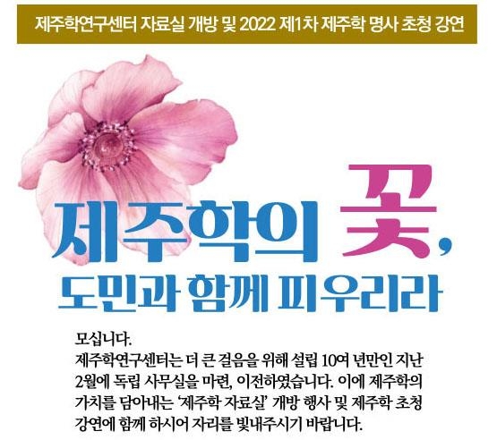 '제주학의 꽃, 도민과 함께 피우리라'는 주제로 열리는 이날 행사는 1부 제주학 자료실 '살레' 개방 행사, 2부 제주학의 대중화를 위한 '제주학' 명사 초청 강연으로 꾸려진다.