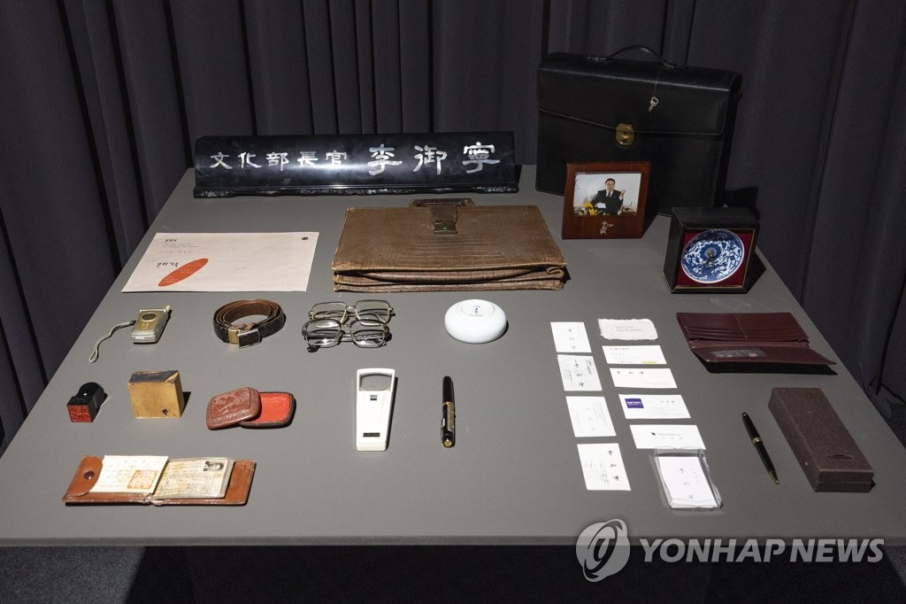 초대 문화부 장관 시절 사용한 명패부터 이화여대 재직 시절 들고 다닌 가방, '이화10년 발전후원회' 회원증 카드, 안경 등까지 모두 이 전 장관이 손때가 묻은 물건이다.