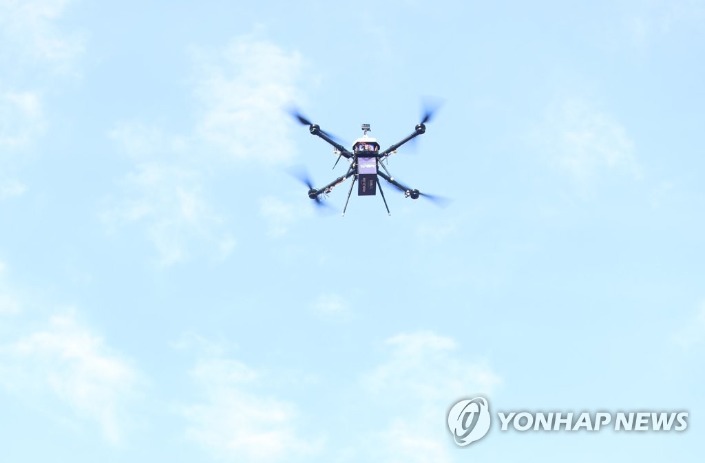 | ▲ This unrelated file photo, taken Jan. 27, 2022, shows a drone flying in skies above Daegu, 302 kilometers south of Seoul. (Yonhap) |