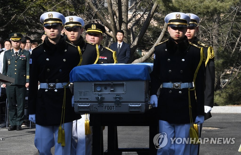 SEOUL, Feb. 22 (Yonhap) -- South Korea on Wednesday repatriated the remains of a U.S. soldier killed during the Korean War, seven decades after the end of the three-year conflict.