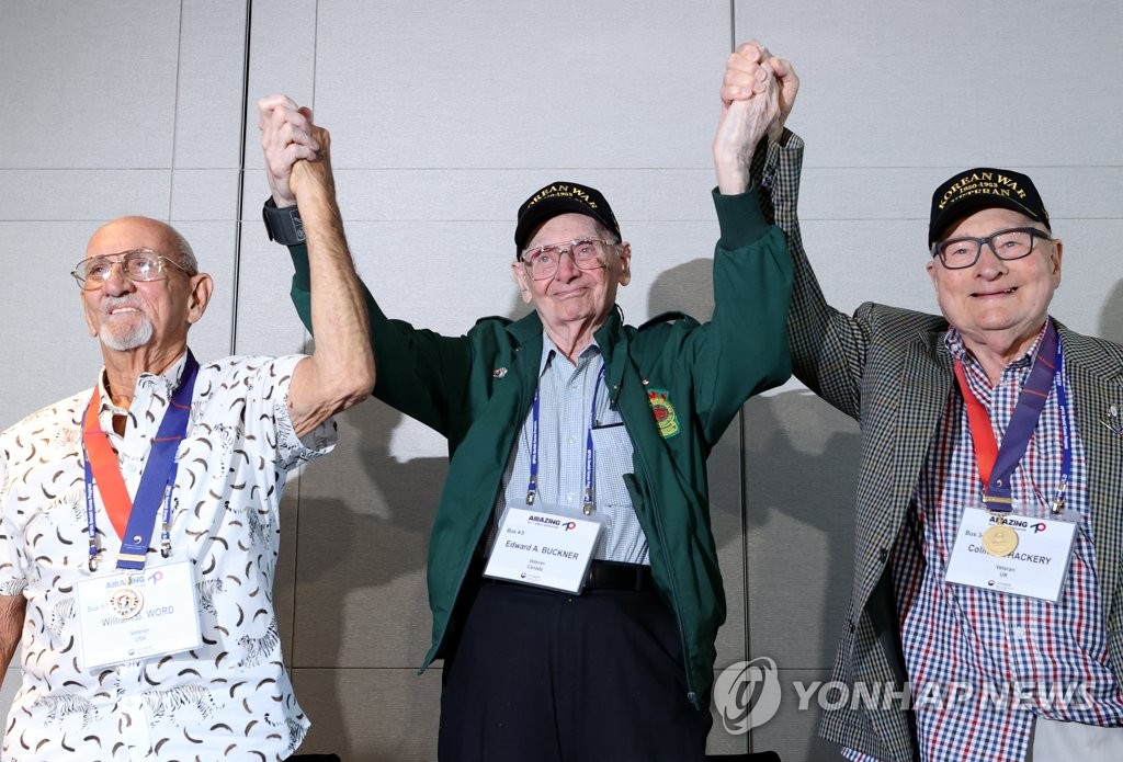 SEOUL, July 25 (Yonhap) -- Seventy years after the end of the Korean War, three foreign veterans expressed their deep emotional attachment to South Korea on Tuesday, stemming from long-lost local acquaintances, battlefield memories and their pride in the "once-flat" country's rise from the ashes of the conflict.