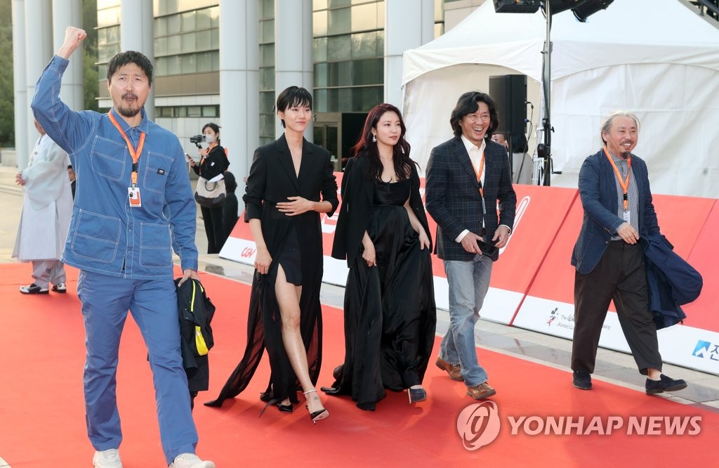 | ▲ 전주국제영화제 레드카펫 밟는 영화 '똥통'팀 (전주=연합뉴스) 임채두 기자 = 27일 오후 전북 전주시 덕진구 한국소리문화의전당에서 열린 제24회 전주국제영화제 개막식에서 영화 '똥통'의 감독과 배우가 레드카펫을 걷고 있다. 2023.4.27 doo@yna.co.kr |
