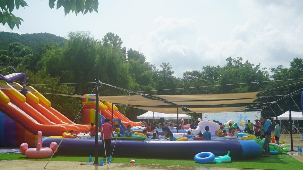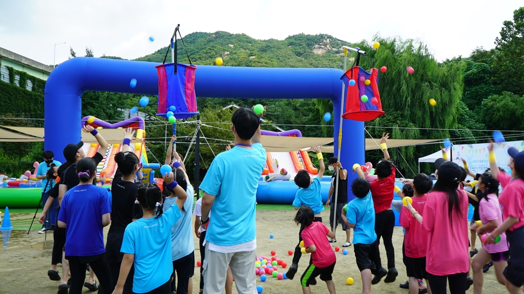 ▲ 펄어비스[263750]는 경기 안양시 소재 '좋은집' 보육원에서 물놀이 기부 행사 '테르미안 워터 페스티벌'을 진행했다고 16일 밝혔다. 펄어비스 직원들은 보육원에 검은사막 속 '테르미안 해변'을 콘셉트로 한 대형 물놀이장을 설치하고 어린이들과 물놀이를 즐겼다. 또 미니 운동회, 부채 만들기, 그림 그리기 등 다양한 프로그램으로 추억을 공유했다. (서울=연합뉴스)