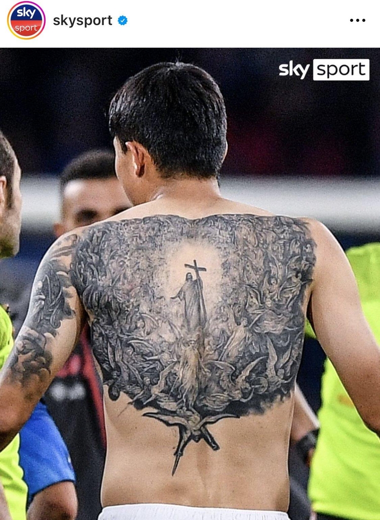 | ▲ 김민재의 등 문신 [스카이스포츠 트위터 캡처. 재판매 및 DB 금지] |