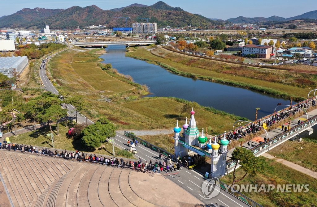전남 함평 엑스포공원 일원에서 열린 '국향대전' 축제장에는 오전부터 방문객들이 몰려들어 입장하기 위한 긴 대기 줄이 만들어지기도 했다.