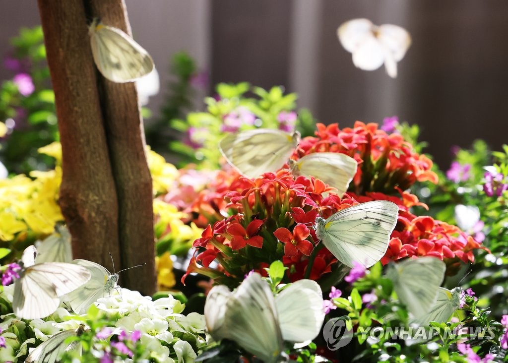 용인 에버랜드를 찾은 입장객들은 최근 문을 연 나비 정원에서 1천 마리 나비들의 비행을 감상했다.