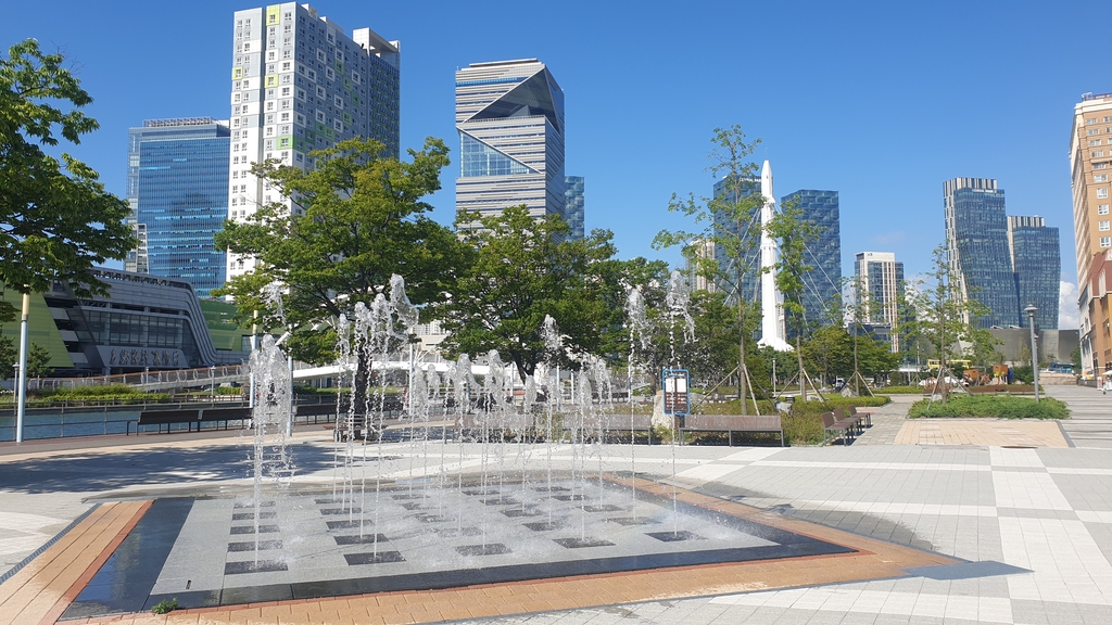(인천=연합뉴스) 인천경제자유구역청은 송도국제도시 센트럴파크·해돋이공원·글로벌파크의 바닥분수 운영을 시작했다고 4일 밝혔다.