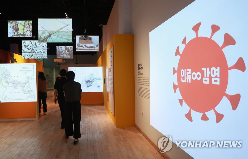 | ▲ 인류 그리고 감염 (서울=연합뉴스) 진연수 기자 = 7일 서울 종로구 대한민국역사박물관에서 열린 개관 10주년 기념 특별전 '다시, 연결: 모두가 안전해질 때까지' 설명회에서 참석자들이 전시를 둘러보고 있다. 전염병의 세계적 대유행, 즉 '팬데믹'을 세계사적 시각에서 다루는 이번 전시는 코로나19를 비롯해 주요 감염병 이야기를 150점의 자료로 생생하게 풀어낸다. 2022.9.7 jin90@yna.co.kr |